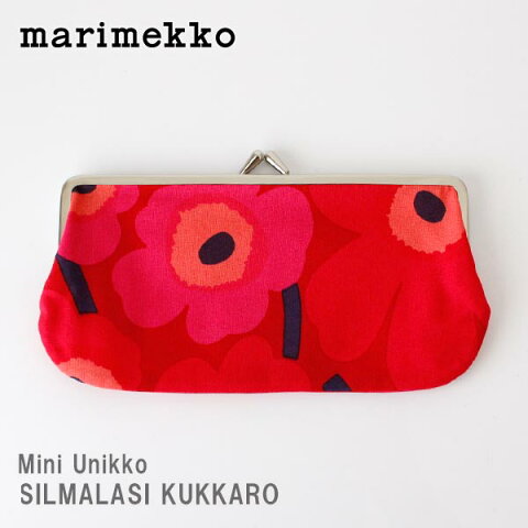 【 メール便 可 】 marimekko ( マリメッコ ) がま口 ポーチ MINI UNIKKO ( ミニ ウニッコ )SILMALASI KUKKARO 小物入れ( 横長 )/ レッド×レッド 【 正規販売店 】