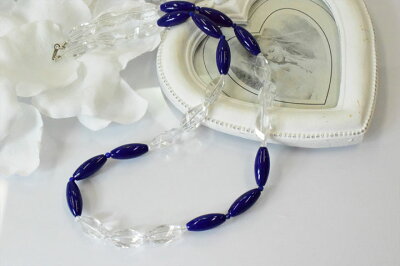 ゆったり長めの瑠璃と水晶の爽やかなネックレス。