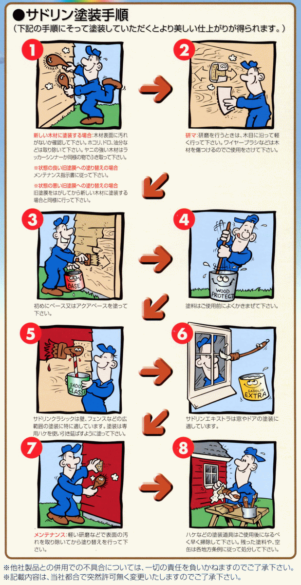 ◆ 塗料をよく浸透させ、耐久性を良くする為、乾燥時間をよくとって下さい。