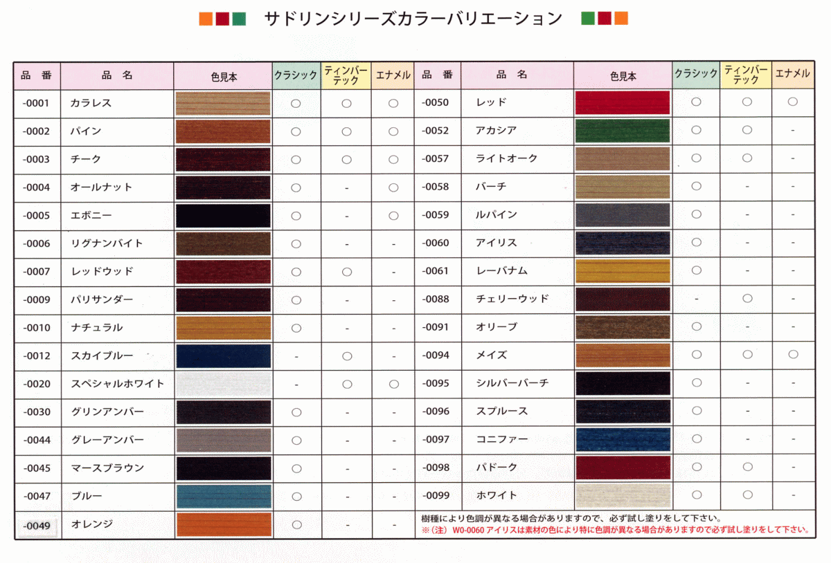 『中塗膜形成型木材保護塗料(半光沢)』 特 徴 ● 圧倒的な隠ぺい力で灰色化した木材を綺麗に再仕上 ● 木材の表面に現れるカビ・シミの発生を抑制 ● 高濃度の顔料と紫外線吸収剤により木材の変色・退色を抑制 ● 塗膜を形成するタイプでクラシックに比べで厚膜の仕上がり ● シロアリ等の害虫から保護 ● カラレスは単品で屋外に塗らないで下さい。